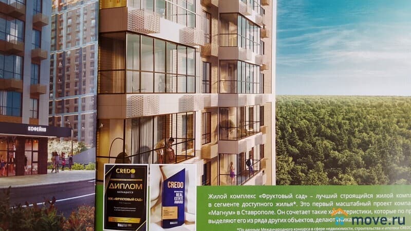 Жилой комплекс «Фруктовый сад»- лучший строящийся 21 этажный жилой комплекс в сегменте доступного жилья. 2 Это первый масштабный проект компании «Магнум» в Ставрополе. Он сочетает такие характеристики, которые по праву выделяют его из ряда других объектов, делаю уникальным, особенным. Удобное расположение в окружении леса, рядом с центром города, является одним из главных преимуществ ЖК «Фруктовый сад». Строится в Промышленном районе, на улице Западный обход. Видовые квартиры, лесной массив как часть территории дома. Зоны отдыха в экостиле, воркаут-зоны, аллея спорта для активного отдыха, современные разновозрастные детские площадки. Безупречный дизайн лобби подчеркивает статус жильцов, отражает класс жилья. В каждом подъезде предусмотрено три лифта, в жилом комплексе обеспечен прямой доступ на лифте к парковочным местам в подземном паркинге и кладовым. Для комфорта жильцов с маленькими детьми на первом этаже есть помещения для колясок, на территории ЖК в целях безопасности установлено круглосуточное видеонаблюдение. Проектом жилого комплекса предусмотрено индивидуальное отопление, теплый пол. Удобный подземный паркинг, предусмотрено в жилом комплексе 692 бесплатных гостевых парковочных мест. На первых этажах ЖК планируется размещение магазинов с промышленными и продовольственными товарами, точки сферы обслуживания и досуга.